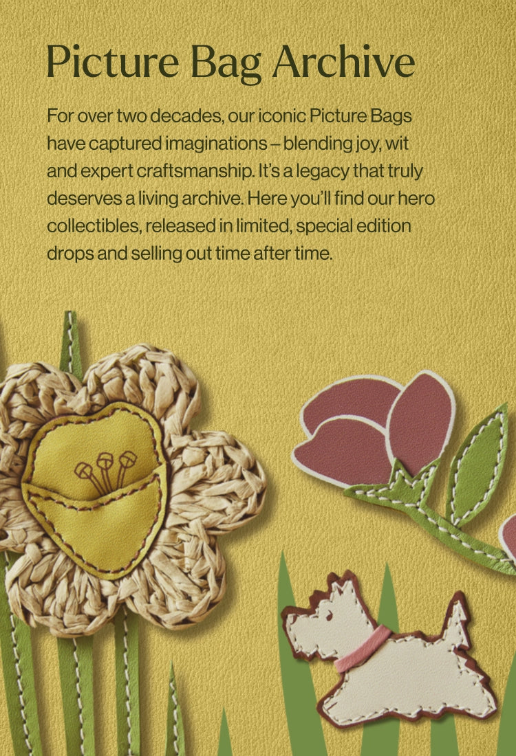 Since 2002, our Picture Bags have delighted collectors with their playful storytelling and unmistakable personality. Each design transforms leather into a distinctly British scene or moment, brought to life through years of leather craft expertise. Together with our artisans, we create wearable art: joyful, imaginative, and unlike anything else.